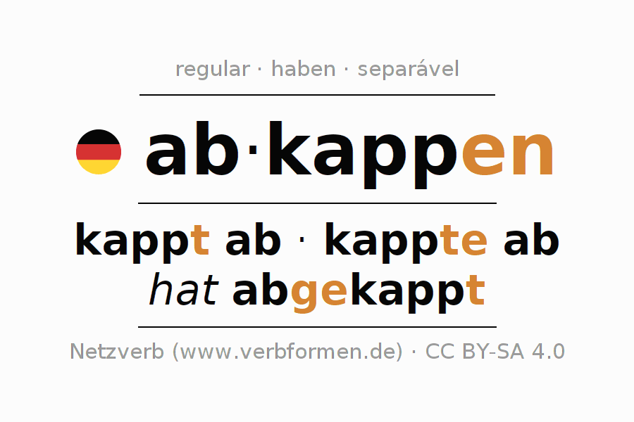 - Presente: kapp(e) (du) ab, kappen wir ab, kappt (ihr) ab, kappen Sie ab