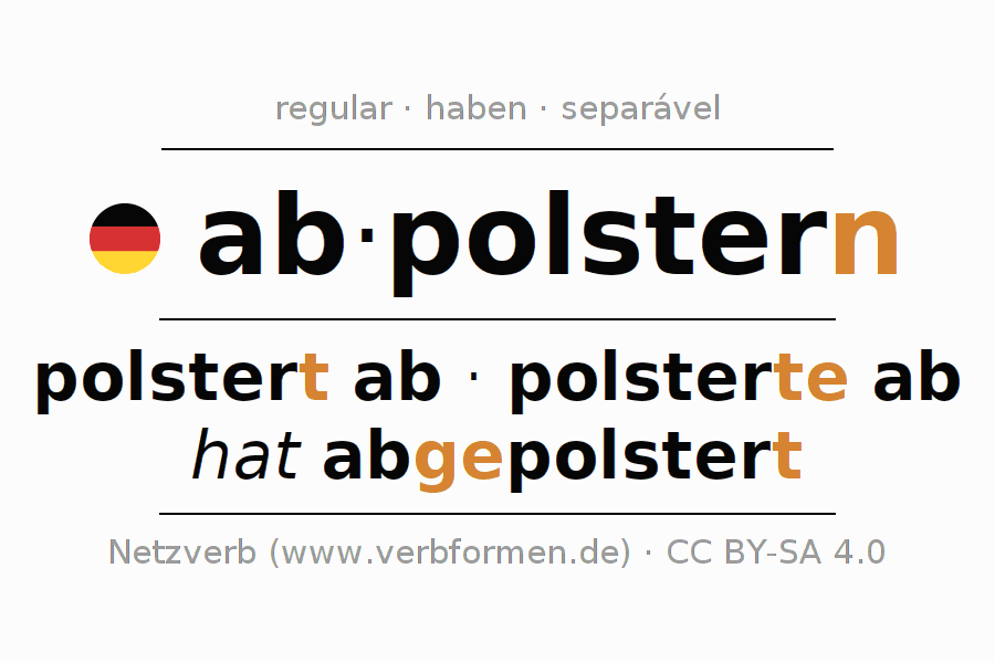 A conjugação do verbo abpolstern (almofadar, estofar) é regular. As formas mais comuns são polstert ab, polsterte ab e hat abgepolstert. O verbo auxilar para abpolstern é "haben".