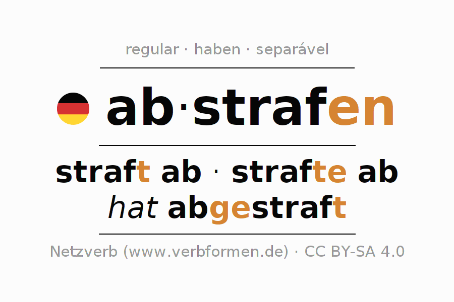 A conjugação do verbo abstrafen (castigar, punir) é regular. As formas mais comuns são straft ab, strafte ab e hat abgestraft. O verbo auxilar para abstrafen é "haben".