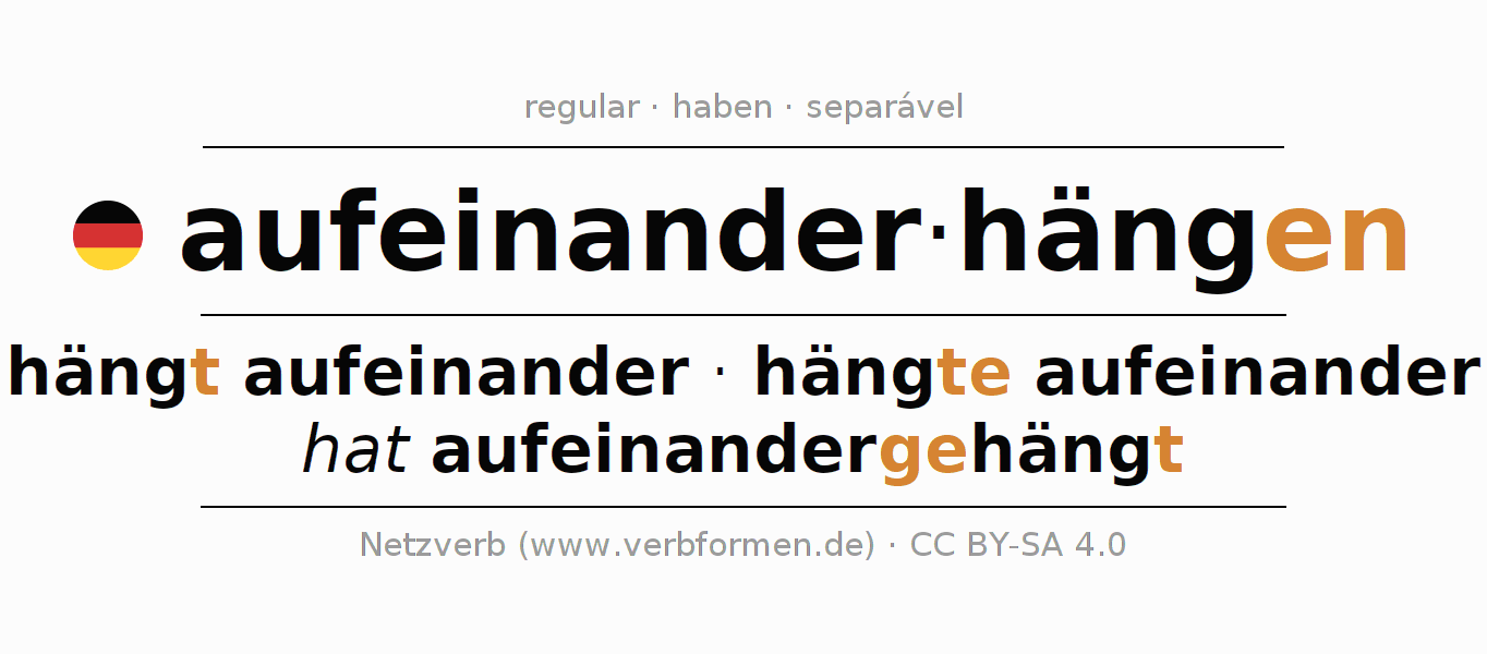 Conjugação simples no presente, pretérito, imperativo e conjuntivo do verbo aufeinanderhängen