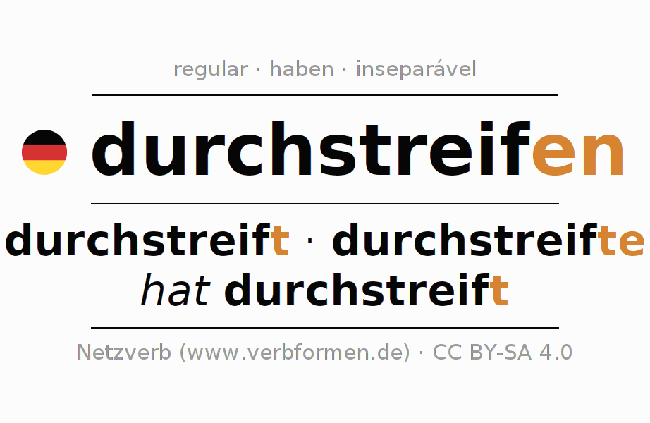 A conjugação do verbo durchstreifen (patrulhar, perambular) é regular. As formas mais comuns são durchstreift, durchstreifte e hat durchstreift. O verbo auxilar para durchstreifen é "haben".