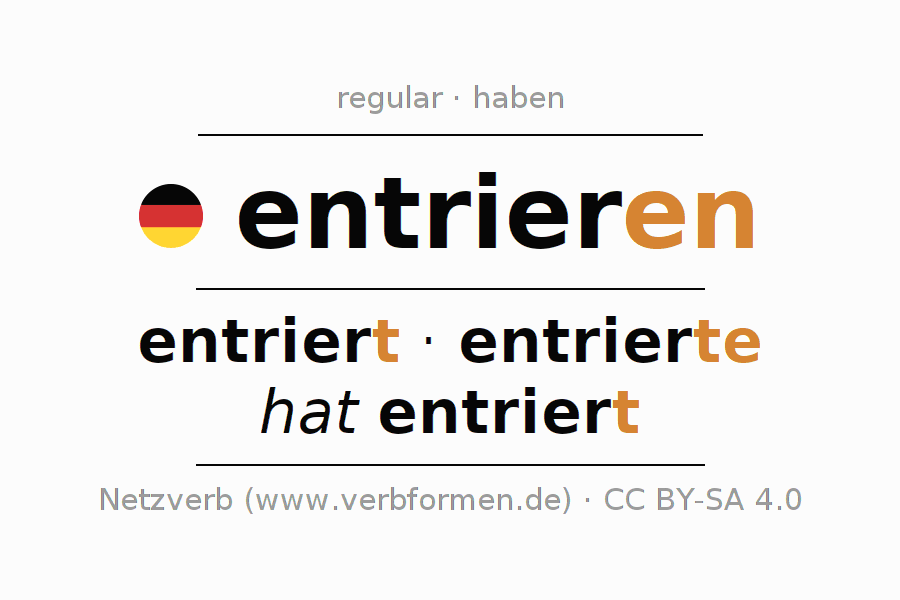 - Presente: entrier(e) (du), entrieren wir, entriert (ihr), entrieren Sie