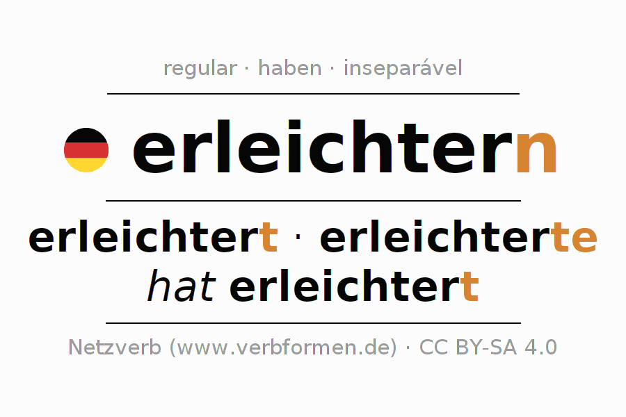 A conjugação do verbo erleichtern (aliviar, facilitar) é regular. As formas mais comuns são erleichtert, erleichterte e hat erleichtert. O verbo auxilar para erleichtern é "haben".