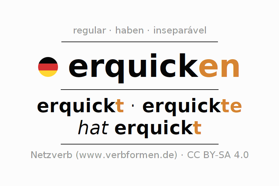 Conjugação simples no presente, pretérito, imperativo e conjuntivo do verbo erquicken