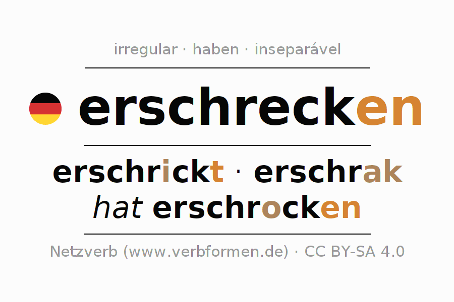 - o. Além disso, há também a conjugação regular. O verbo auxilar para erschrecken é "haben". No entanto, há formas verbais com o verbo auxiliar " sein".