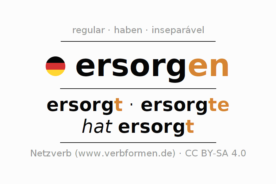 O prefixo er- de ersorgen é inseparável. A flexão ocorre em Ativo e é usada como Oração principal. Para melhor compreensão estão disponíveis incontáveis. Exemplos do verbo ersorgen . Para a prática e consolidação do estudo