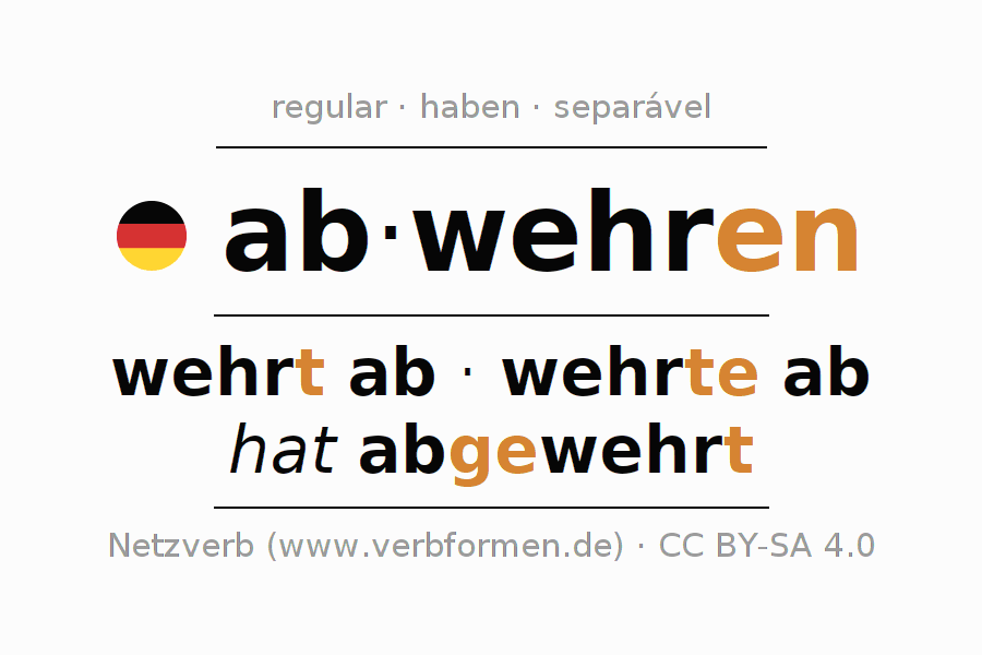 Exemplos do uso da Conjugação do verbo abwehren. Estas são frases reais e frases do projeto Tatoeba. Para cada forma conjugada, será exibida uma sentença como exemplo. A forma verbal é destacada. Se houver mais de uma frase, um exemplo com o verbo alemão abwehren será selecionado. A fim de entender a conjugação não apenas pelos exemplos, mas também para treinar, folhas de exercícios para o verbo abwehren estão disponíveis.