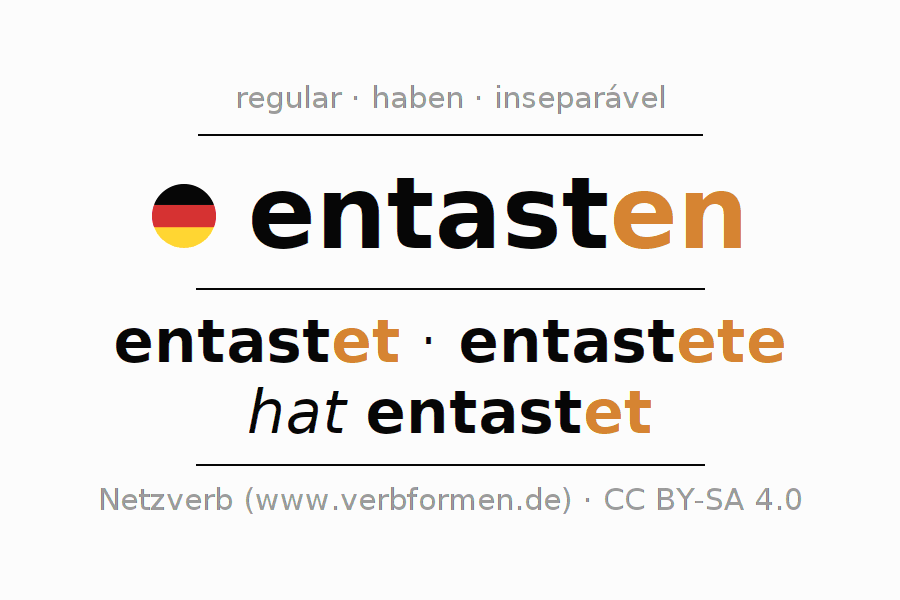 Exemplos do uso da Conjugação do verbo entasten. Estas são frases reais e frases do projeto Tatoeba. Para cada forma conjugada, será exibida uma sentença como exemplo. A forma verbal é destacada. Se houver mais de uma frase, um exemplo com o verbo alemão entasten será selecionado. A fim de entender a conjugação não apenas pelos exemplos, mas também para treinar, folhas de exercícios para o verbo entasten estão disponíveis.