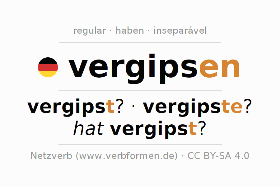Exemplos do uso da Conjugação do verbo vergipsen. Estas são frases reais e frases do projeto Tatoeba. Para cada forma conjugada, será exibida uma sentença como exemplo. A forma verbal é destacada. Se houver mais de uma frase, um exemplo com o verbo alemão vergipsen será selecionado. A fim de entender a conjugação não apenas pelos exemplos, mas também para treinar, folhas de exercícios para o verbo vergipsen estão disponíveis.