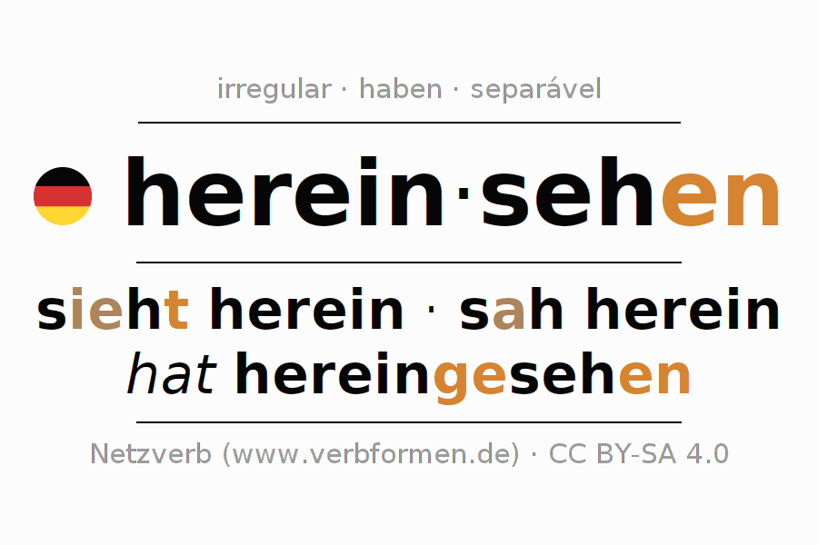 Significados e sinônimos de hereinsehenRegras de conjugação