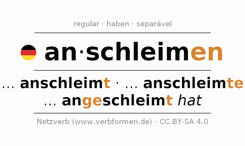 - Como conjugar o verbo anschleimen no Infinitivo?