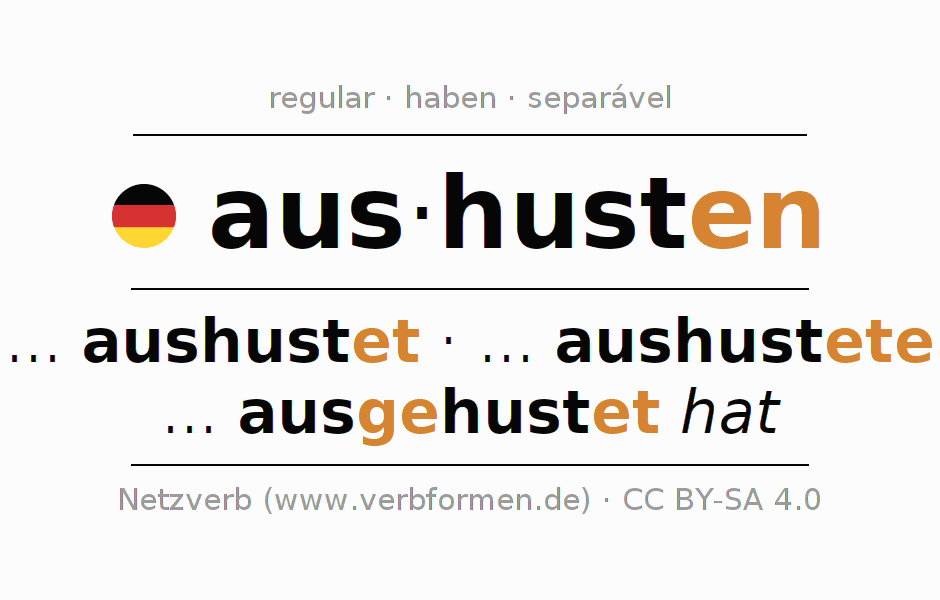 Exemplos do uso da Conjugação do verbo aushusten. Estas são frases reais e frases do projeto Tatoeba. Para cada forma conjugada, será exibida uma sentença como exemplo. A forma verbal é destacada. Se houver mais de uma frase, um exemplo com o verbo alemão aushusten será selecionado. A fim de entender a conjugação não apenas pelos exemplos, mas também para treinar, folhas de exercícios para o verbo aushusten estão disponíveis.
