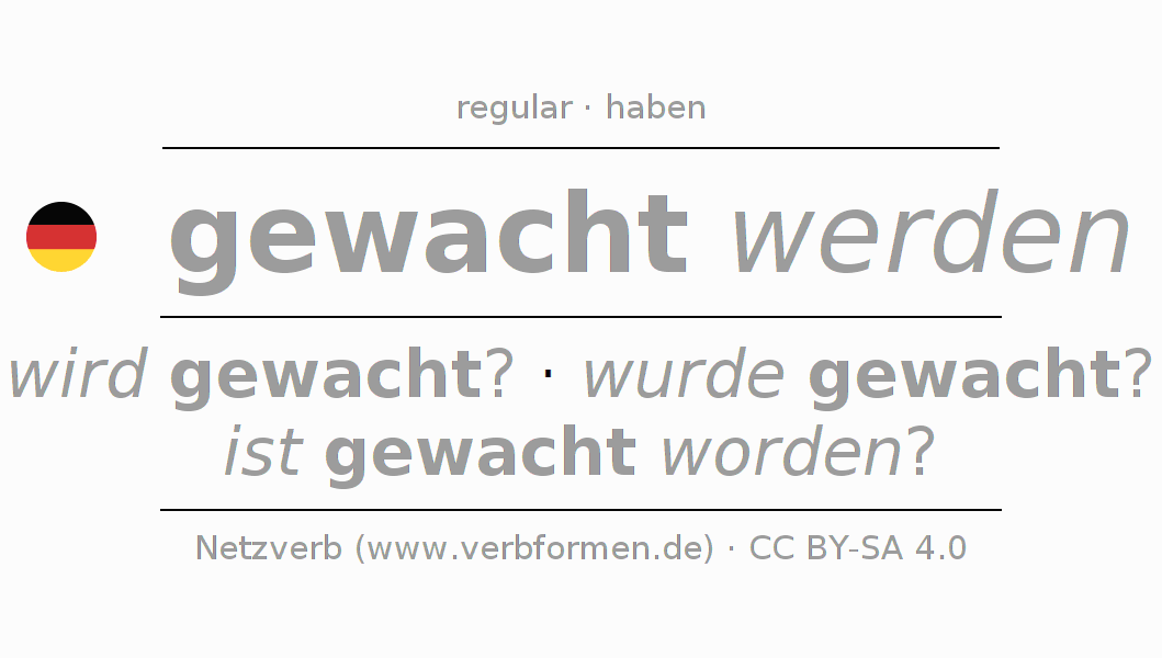 Exemplos do uso da Conjugação do verbo wachen. Estas são frases reais e frases do projeto Tatoeba. Para cada forma conjugada, será exibida uma sentença como exemplo. A forma verbal é destacada. Se houver mais de uma frase, um exemplo com o verbo alemão wachen será selecionado. A fim de entender a conjugação não apenas pelos exemplos, mas também para treinar, folhas de exercícios para o verbo wachen estão disponíveis.