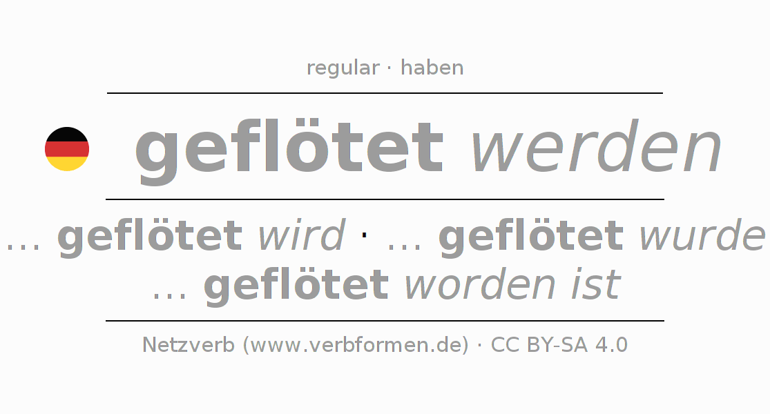 Exemplos do uso da Conjugação do verbo flöten. Estas são frases reais e frases do projeto Tatoeba. Para cada forma conjugada, será exibida uma sentença como exemplo. A forma verbal é destacada. Se houver mais de uma frase, um exemplo com o verbo alemão flöten será selecionado. A fim de entender a conjugação não apenas pelos exemplos, mas também para treinar, folhas de exercícios para o verbo flöten estão disponíveis.