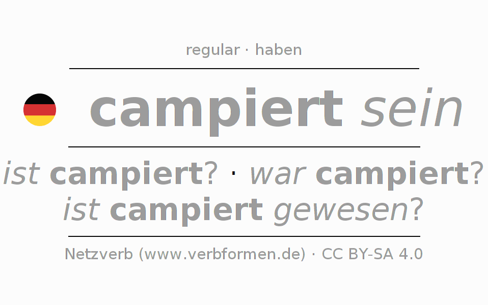 Exemplos do uso da Conjugação do verbo campieren. Estas são frases reais e frases do projeto Tatoeba. Para cada forma conjugada, será exibida uma sentença como exemplo. A forma verbal é destacada. Se houver mais de uma frase, um exemplo com o verbo alemão campieren será selecionado. A fim de entender a conjugação não apenas pelos exemplos, mas também para treinar, folhas de exercícios para o verbo campieren estão disponíveis.