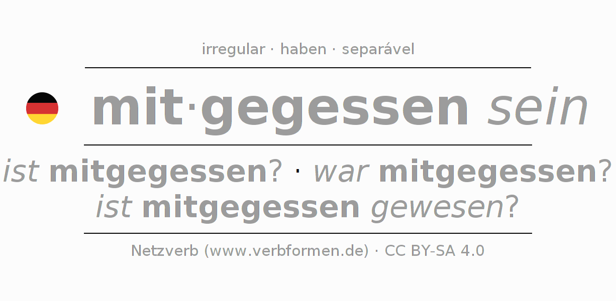 Exemplos do uso da Conjugação do verbo mitessen. Estas são frases reais e frases do projeto Tatoeba. Para cada forma conjugada, será exibida uma sentença como exemplo. A forma verbal é destacada. Se houver mais de uma frase, um exemplo com o verbo alemão mitessen será selecionado. A fim de entender a conjugação não apenas pelos exemplos, mas também para treinar, folhas de exercícios para o verbo mitessen estão disponíveis.