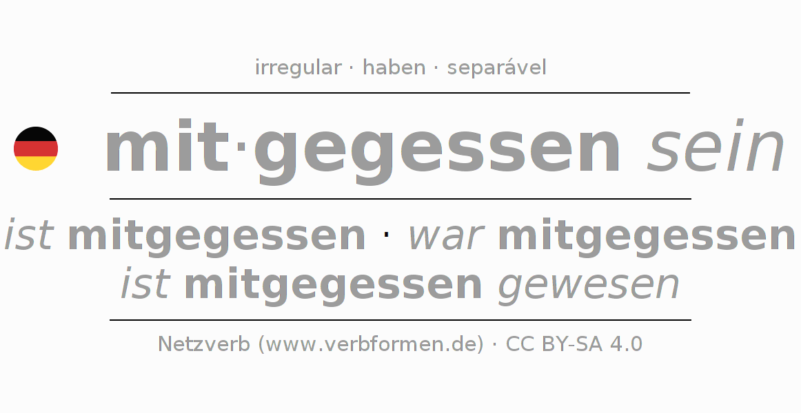 Exemplos do uso da Conjugação do verbo mitessen. Estas são frases reais e frases do projeto Tatoeba. Para cada forma conjugada, será exibida uma sentença como exemplo. A forma verbal é destacada. Se houver mais de uma frase, um exemplo com o verbo alemão mitessen será selecionado. A fim de entender a conjugação não apenas pelos exemplos, mas também para treinar, folhas de exercícios para o verbo mitessen estão disponíveis.