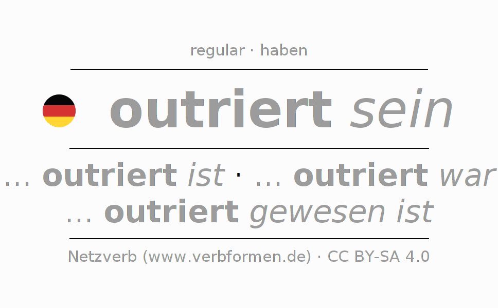 Exemplos do uso da Conjugação do verbo outrieren. Estas são frases reais e frases do projeto Tatoeba. Para cada forma conjugada, será exibida uma sentença como exemplo. A forma verbal é destacada. Se houver mais de uma frase, um exemplo com o verbo alemão outrieren será selecionado. A fim de entender a conjugação não apenas pelos exemplos, mas também para treinar, folhas de exercícios para o verbo outrieren estão disponíveis.