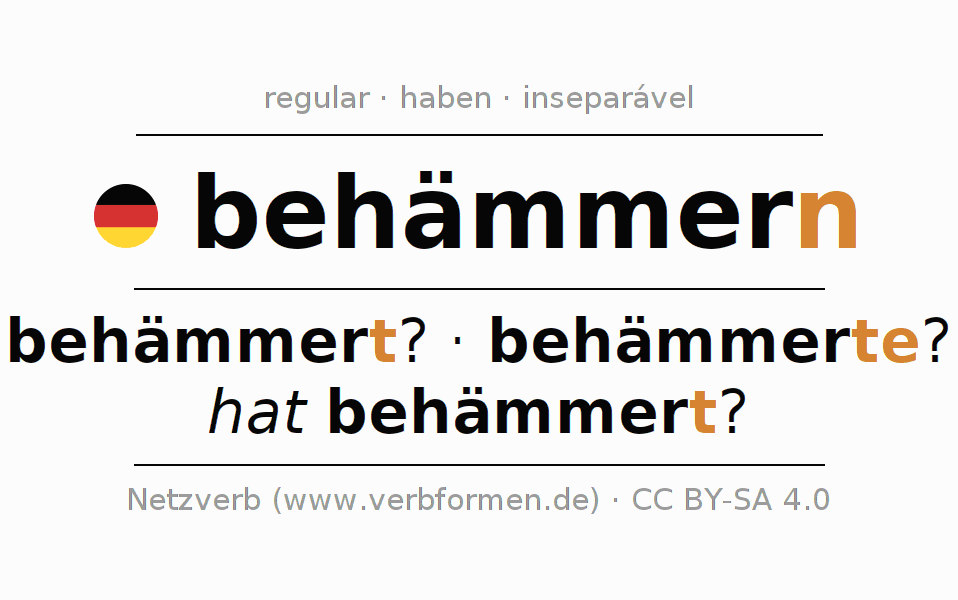 Conjugação simples no presente, pretérito, imperativo e conjuntivo do verbo behämmern