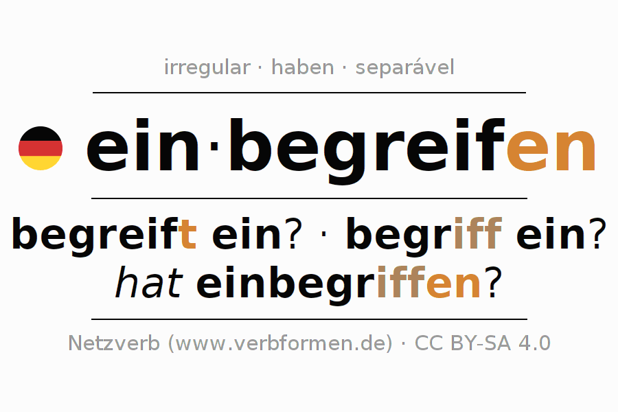 A conjugação do verbo einbegreifen (abranger, incluir) é irregular. As formas mais comuns são begreift ein?, begriff ein? e hat einbegriffen?. A apofonia é feita com a vogal do radical ei