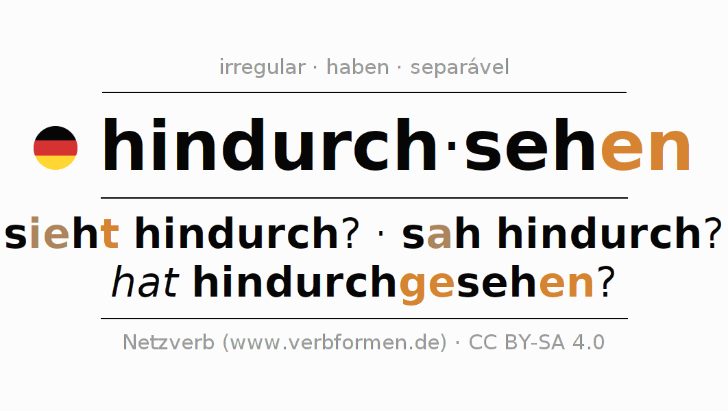 A conjugação do verbo hindurchsehen (ver através) é irregular. As formas mais comuns são sieht hindurch?, sah hindurch? e hat hindurchgesehen?. A apofonia é feita com a vogal do radical e