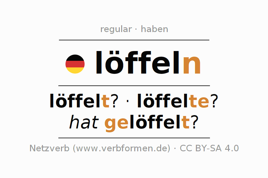 A conjugação do verbo löffeln (comer com colher, servir com colher) é regular. As formas mais comuns são löffelt?, löffelte? e hat gelöffelt?. O verbo auxilar para löffeln é "haben".