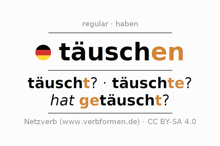 A conjugação do verbo täuschen (enganar, iludir) é regular. As formas mais comuns são täuscht?, täuschte? e hat getäuscht?. O verbo auxilar para täuschen é "haben".