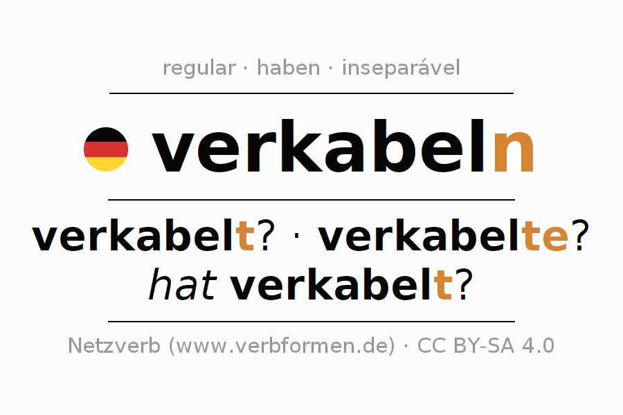 A conjugação do verbo verkabeln (conectar, cabeamento) é regular. As formas mais comuns são verkabelt?, verkabelte? e hat verkabelt?. O verbo auxilar para verkabeln é "haben".