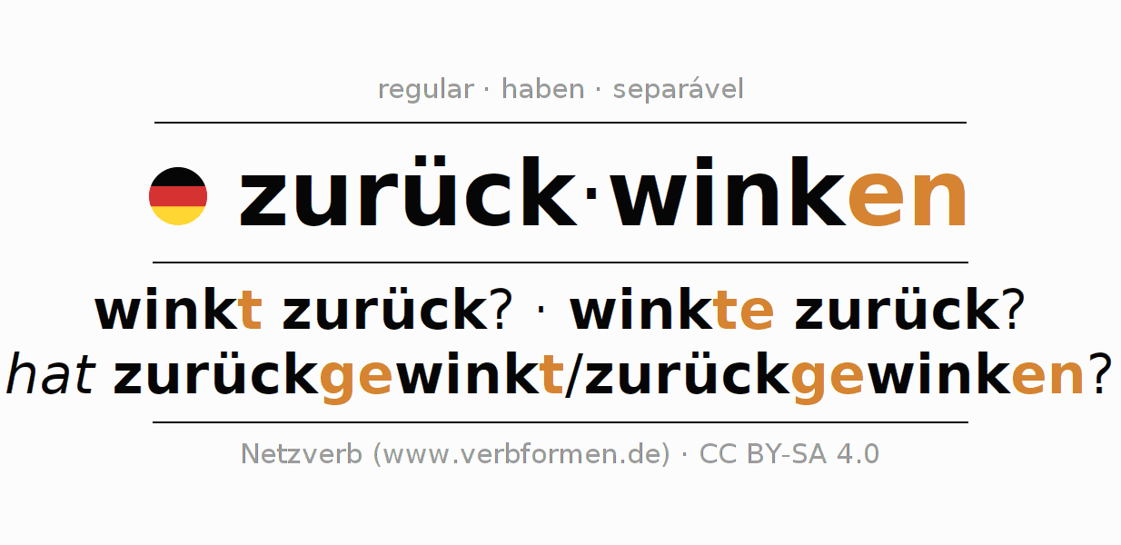 A conjugação do verbo zurückwinken (acenar de volta) é regular. As formas mais comuns são winkt zurück?, winkte zurück? e hat zurückgewinkt/zurückgewinken?. O verbo auxilar para zurückwinken é "haben".