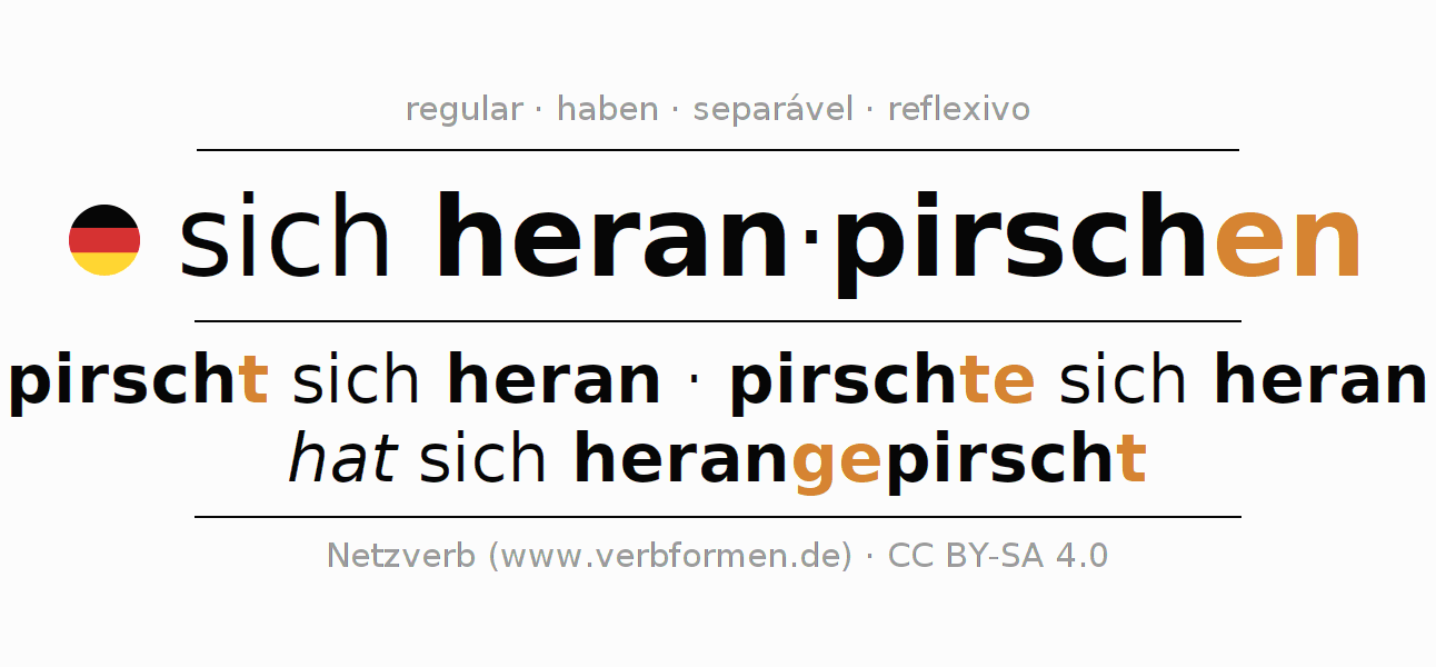 Conjugação simples no presente, pretérito, imperativo e conjuntivo do verbo sich heranpirschen