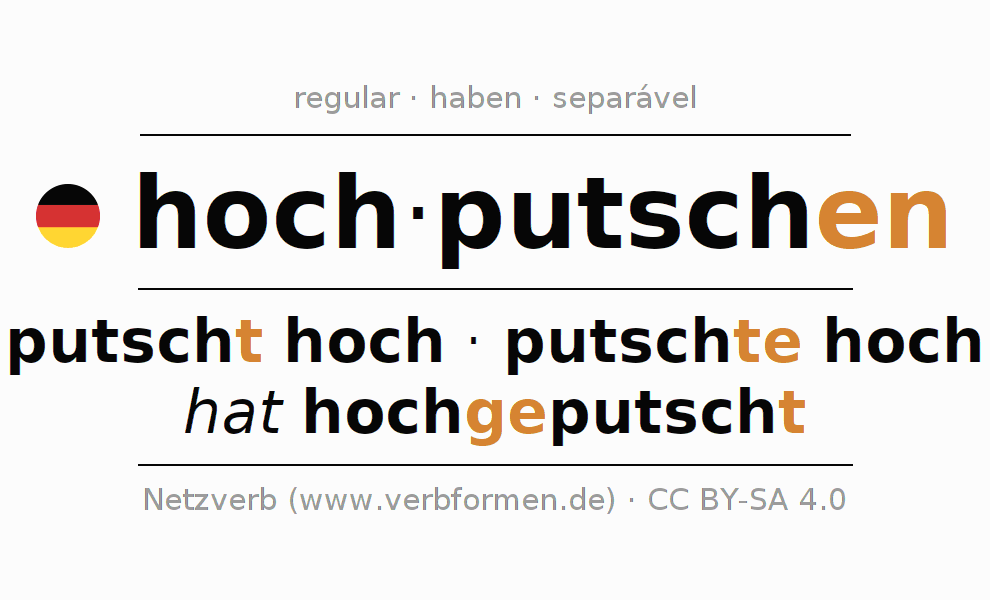 Conjugação simples no presente, pretérito, imperativo e conjuntivo do verbo hochputschen