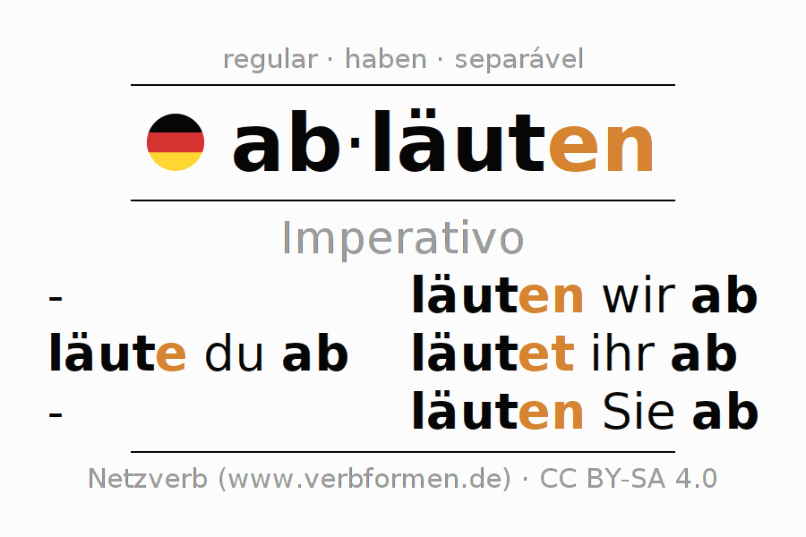O verbo abläuten é totalmente conjugado em todas as pessoas e números no Imperativo Presente
