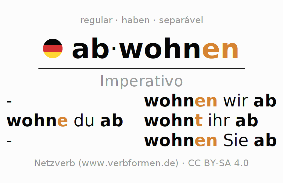 O verbo abwohnen é totalmente conjugado em todas as pessoas e números no Imperativo Presente