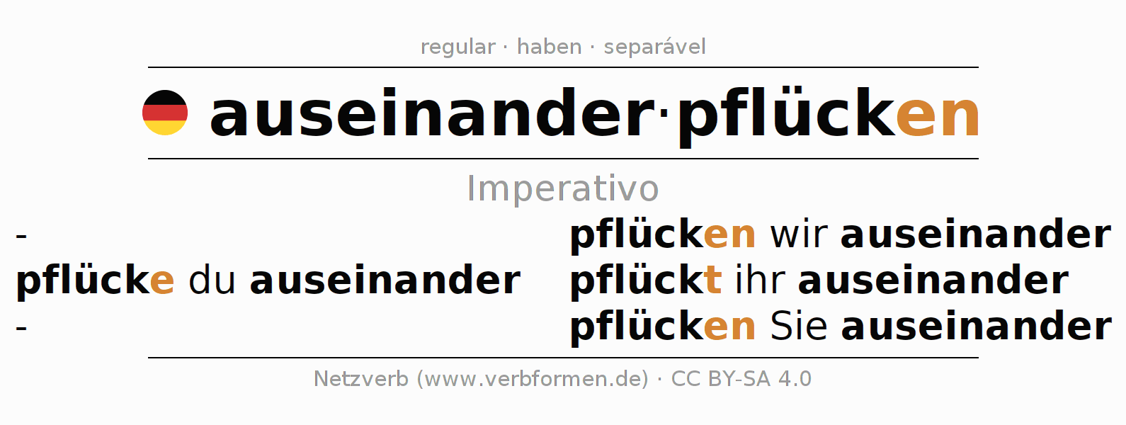- Como conjugar o verbo auseinanderpflücken no Imperativo?