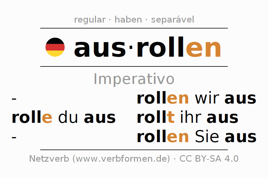 O verbo ausrollen (hat) é totalmente conjugado em todas as pessoas e números no Imperativo Presente