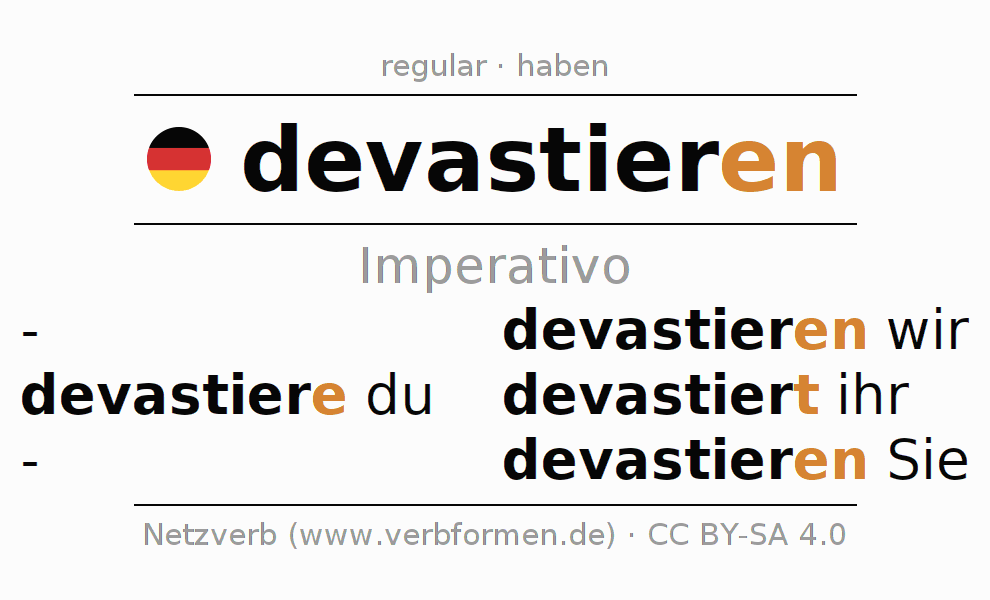 O verbo devastieren é totalmente conjugado em todas as pessoas e números no Imperativo Presente