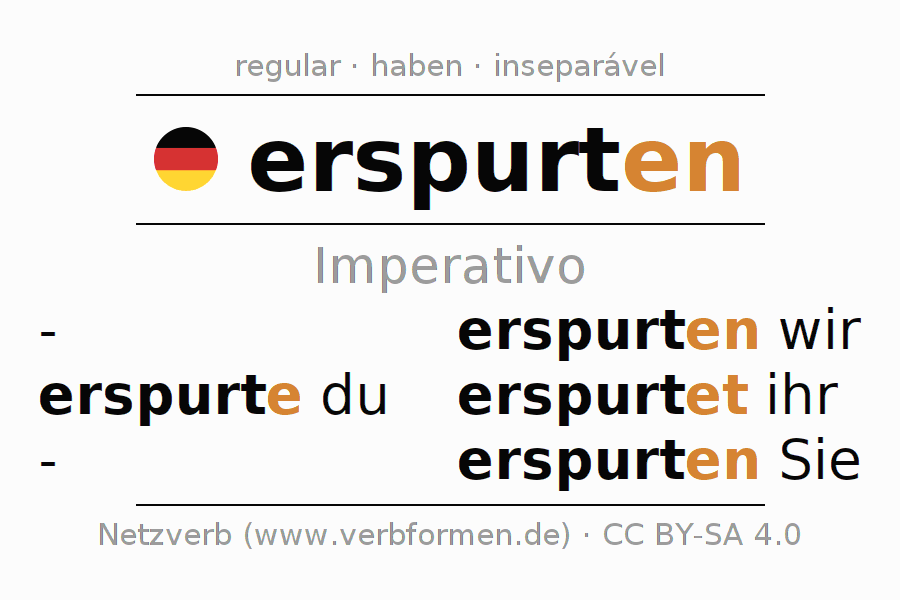 As formas de conjugação do verbo erspurten (ganhar, vencer) no imperativo são: erspurte (du), erspurten wir, erspurtet (ihr), erspurten Sie