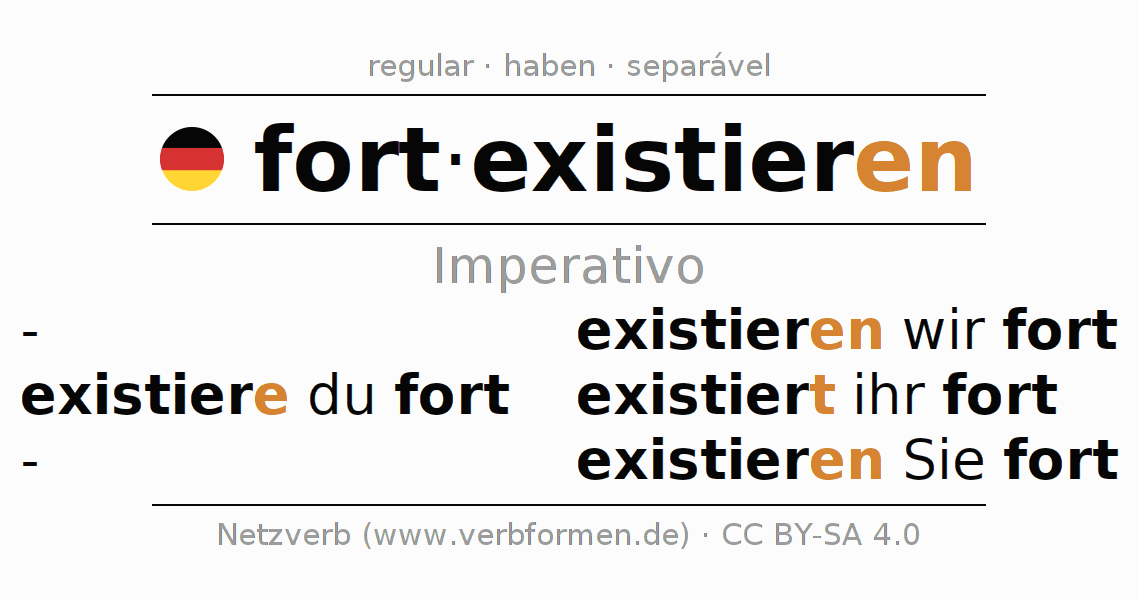 O verbo fortexistieren é totalmente conjugado em todas as pessoas e números no Imperativo Presente