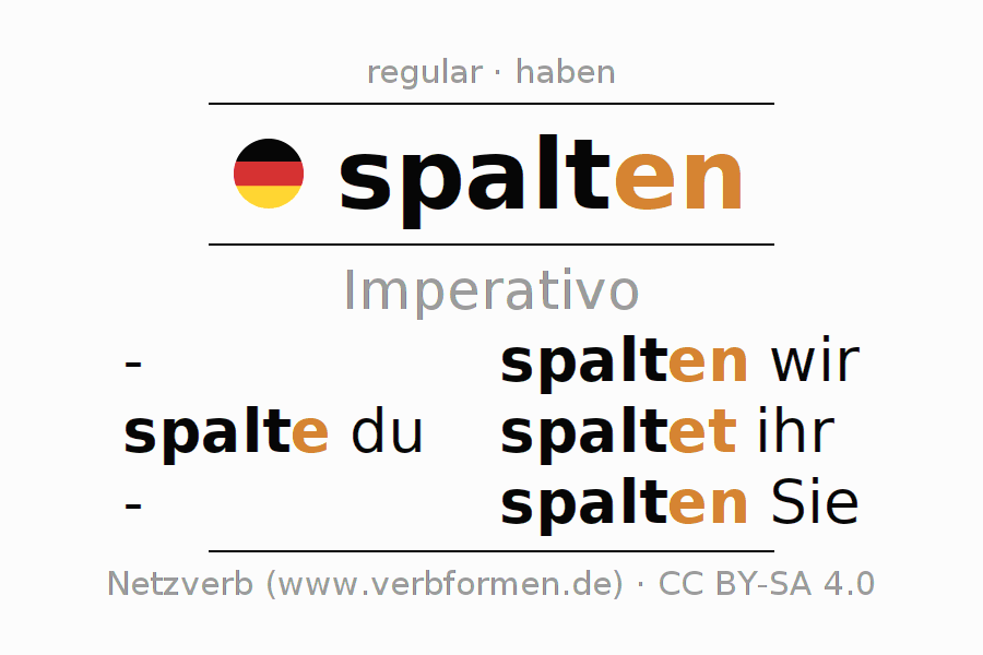 O verbo spalten é totalmente conjugado em todas as pessoas e números no Imperativo Presente