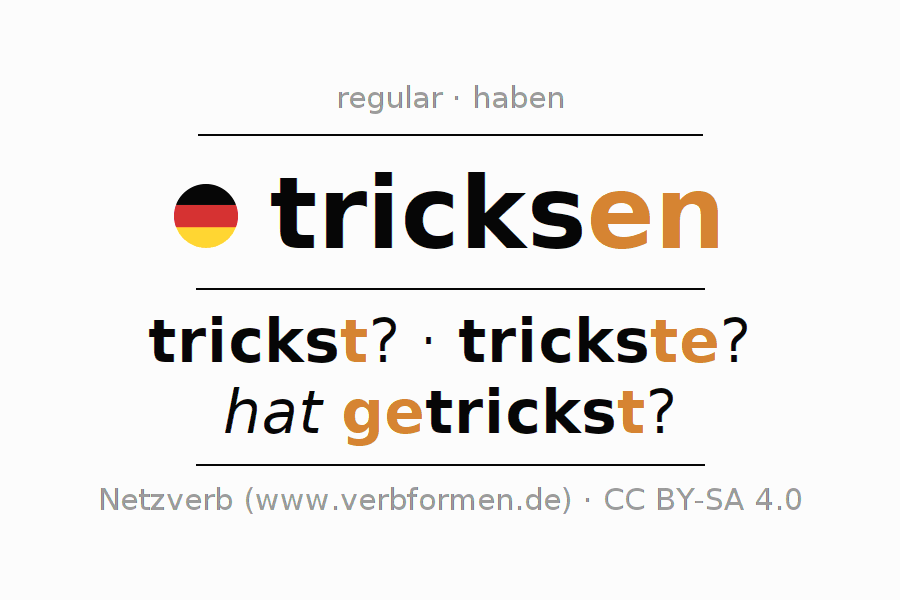 O verbo tricksen é totalmente conjugado em todas as pessoas e números no Imperativo Presente