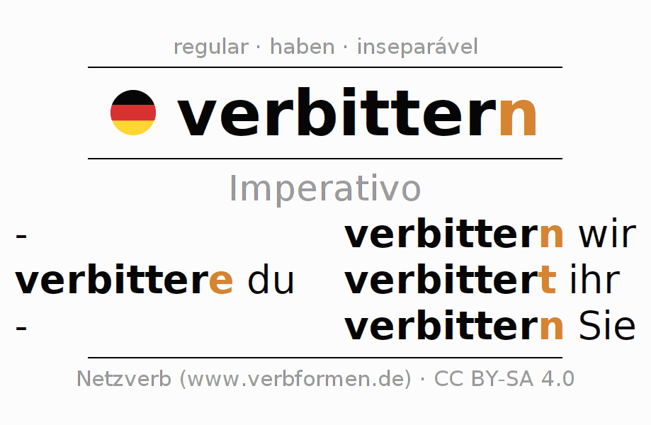 O verbo verbittern (hat) é totalmente conjugado em todas as pessoas e números no Imperativo Presente