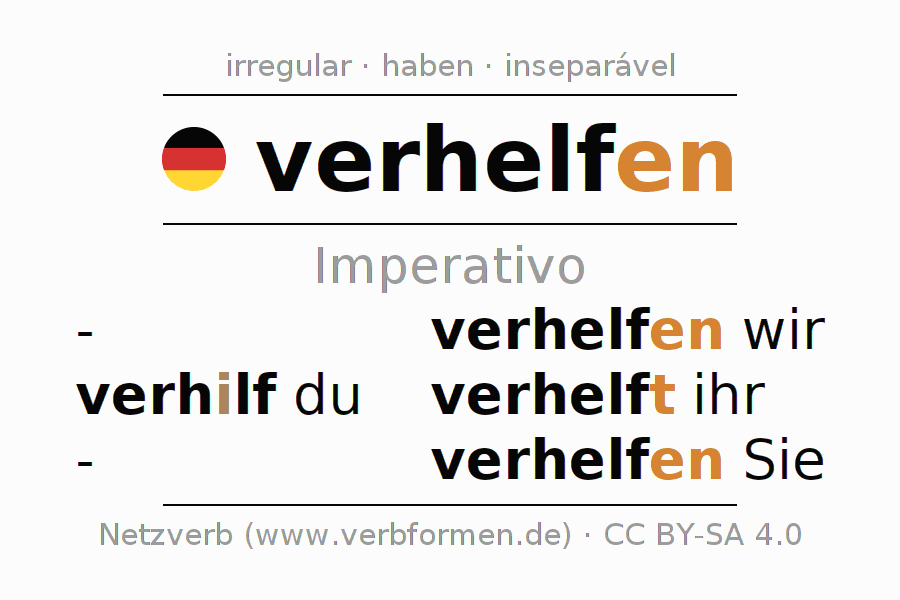 O verbo verhelfen é totalmente conjugado em todas as pessoas e números no Imperativo Presente