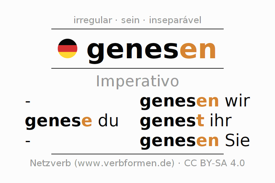 O verbo genesen é totalmente conjugado em todas as pessoas e números no Imperativo Presente