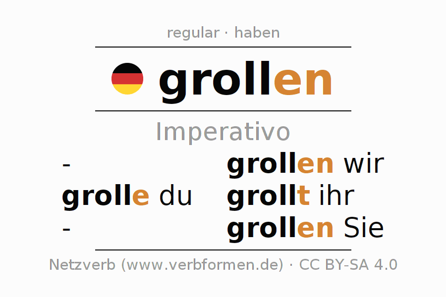 O verbo grollen é totalmente conjugado em todas as pessoas e números no Imperativo Presente