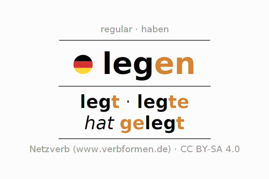 O verbo legen é totalmente conjugado em todas as pessoas e números no Imperativo Presente