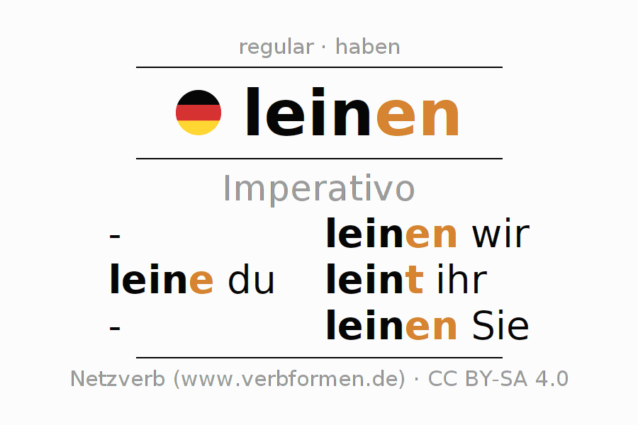 O verbo leinen é totalmente conjugado em todas as pessoas e números no Imperativo Presente