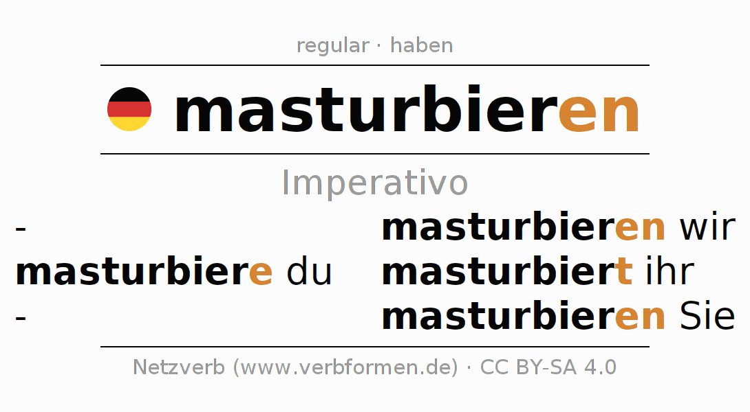 O verbo masturbieren é totalmente conjugado em todas as pessoas e números no Imperativo Presente