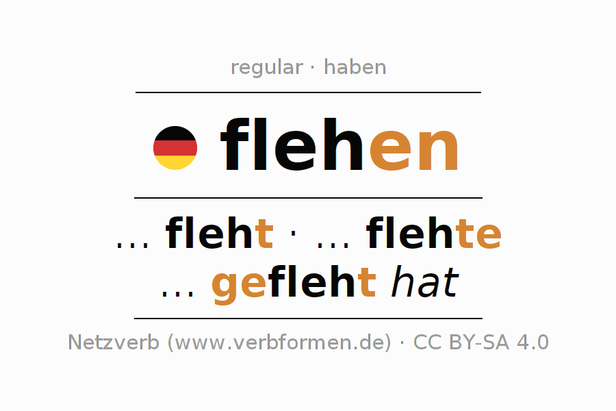 O verbo flehen é totalmente conjugado em todas as pessoas e números no Imperativo Presente