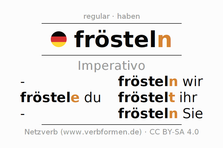 O verbo frösteln é totalmente conjugado em todas as pessoas e números no Imperativo Presente