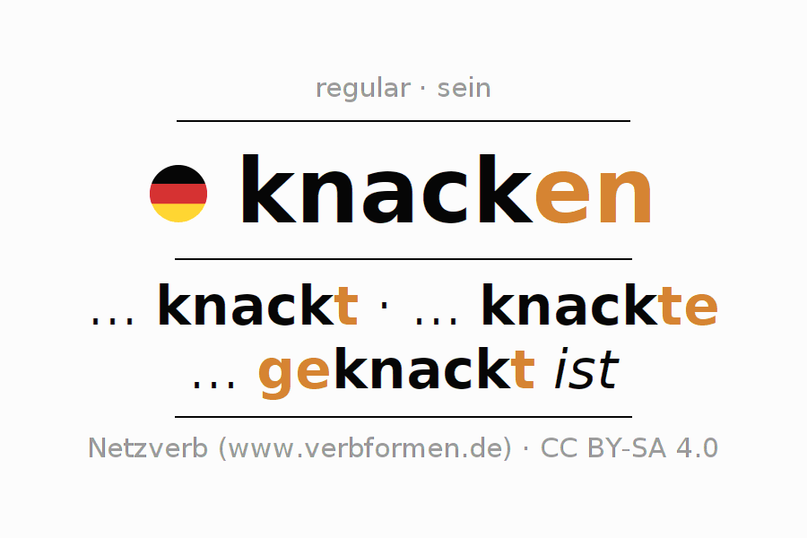 O verbo knacken (ist) é totalmente conjugado em todas as pessoas e números no Imperativo Presente